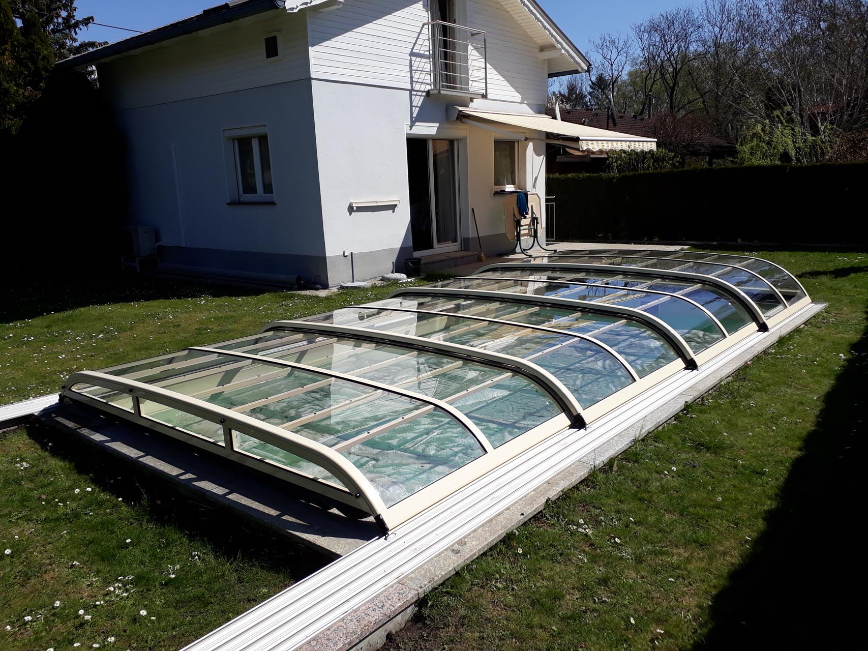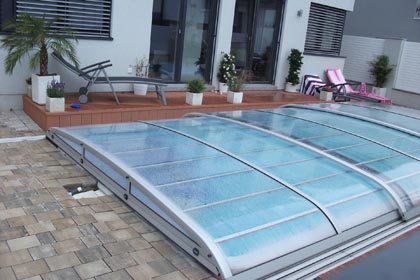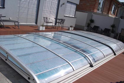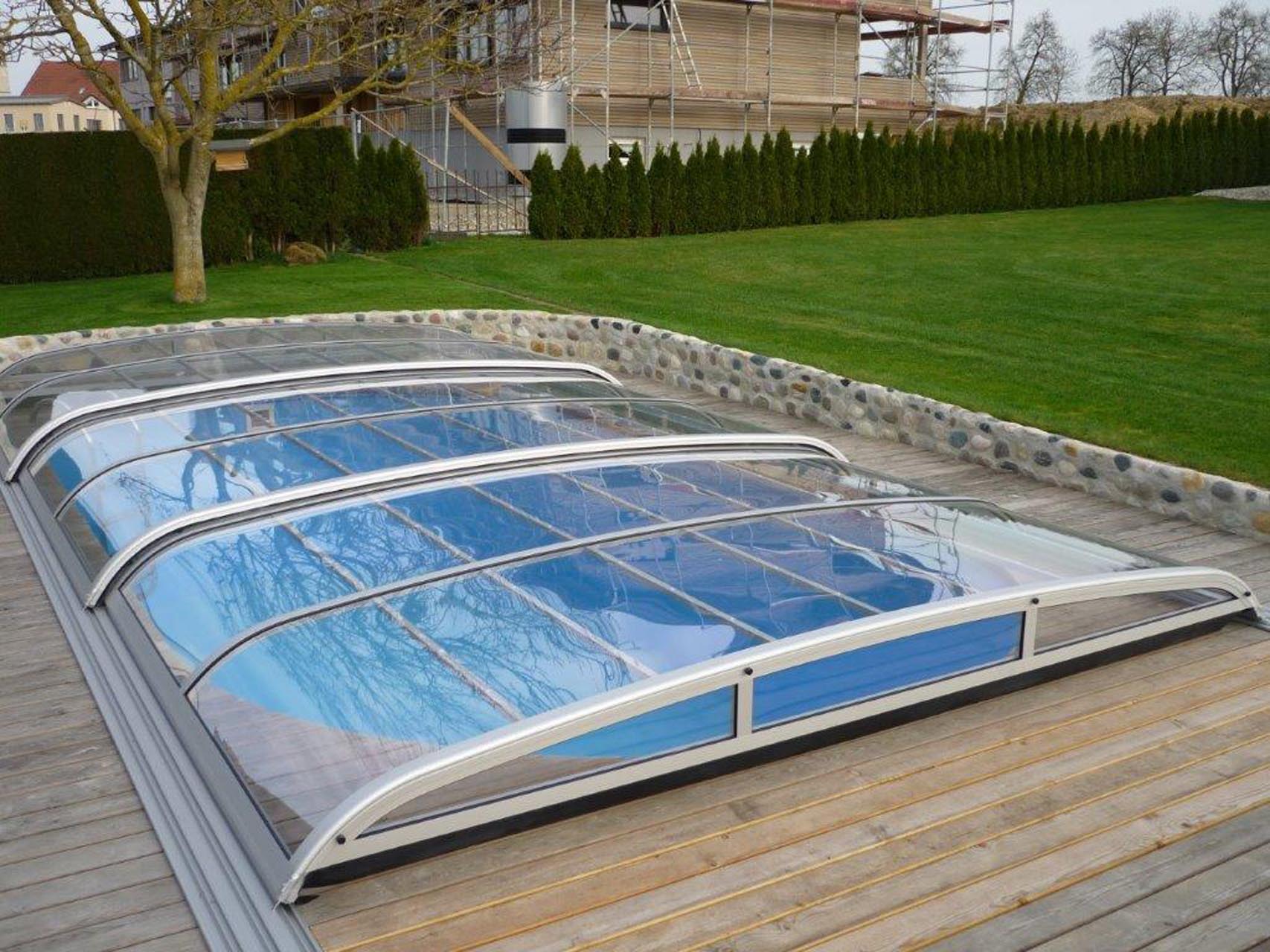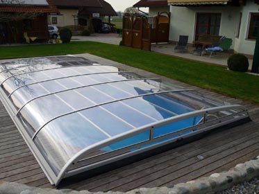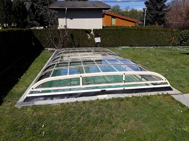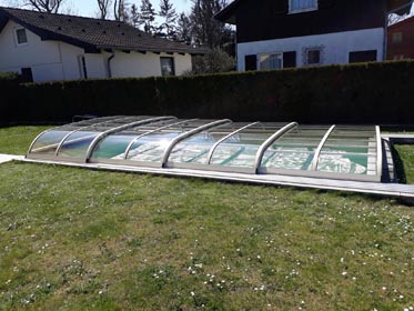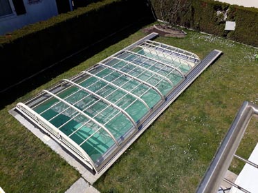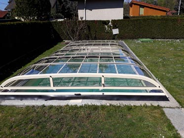 Korbbogenförmiger Querschnitt mit 3 mm naturklarer Polykarbonat-Verglasung.