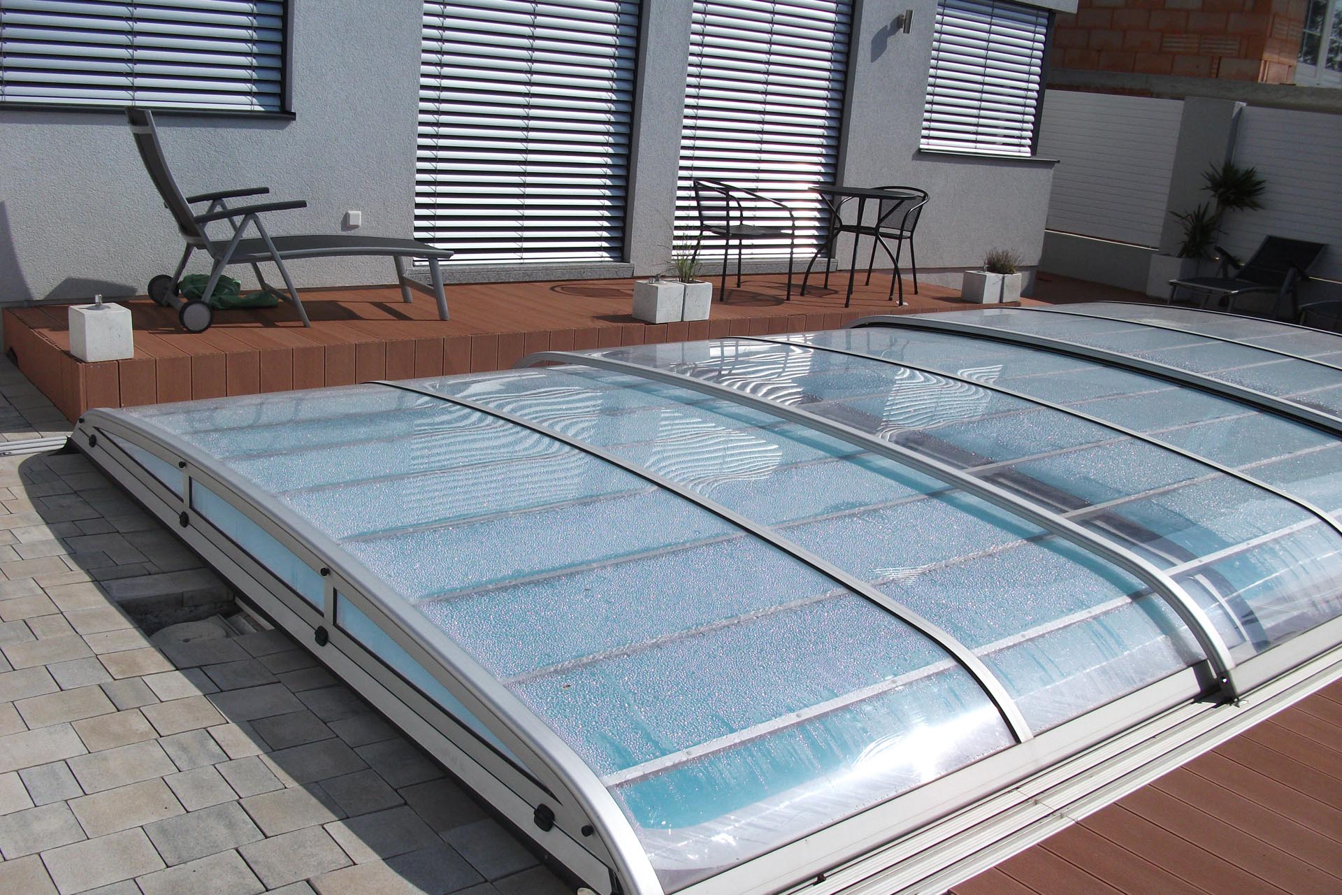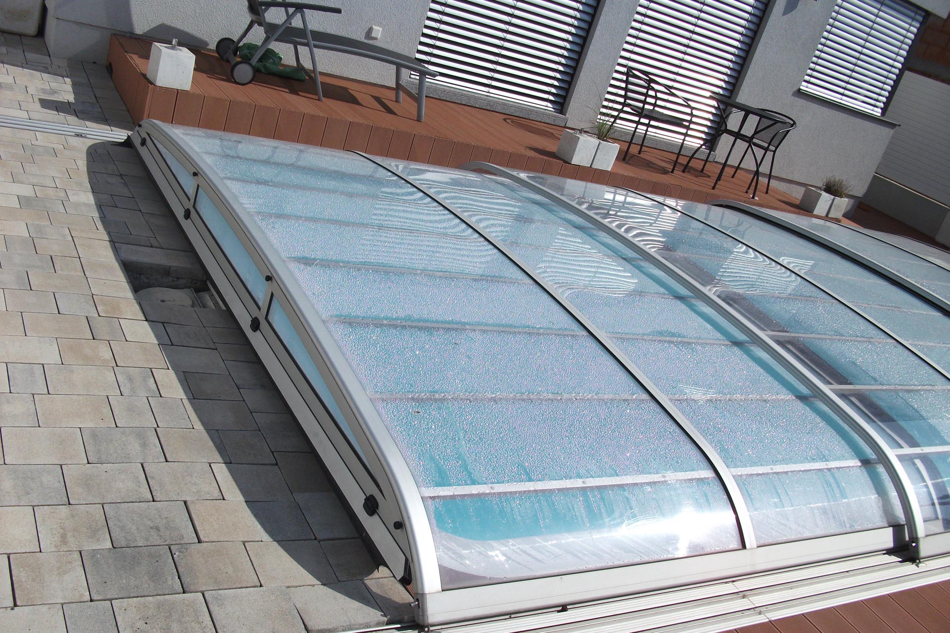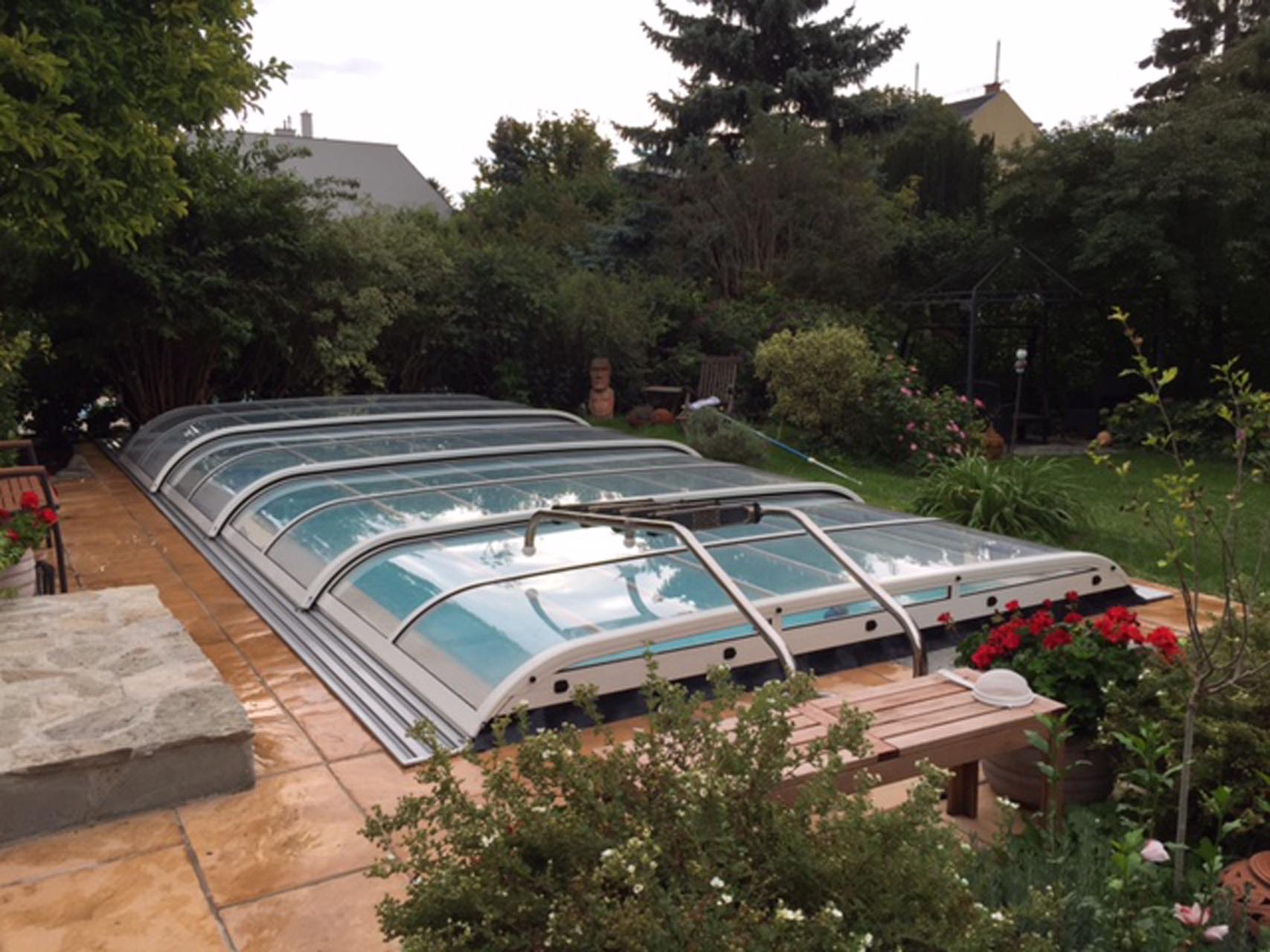 Korbbogenförmiger Querschnitt mit 3 mm naturklarer Polykarbonat-Verglasung.