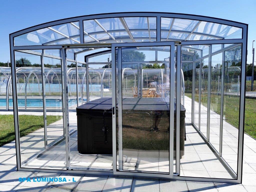 Die Poolüberdachung SPA wurde komplett neu entwickelt und basiert auf einem rechteckigen Pavillon welcher für Jacuzzis aber auch Badebottiche verwendet werden kann.