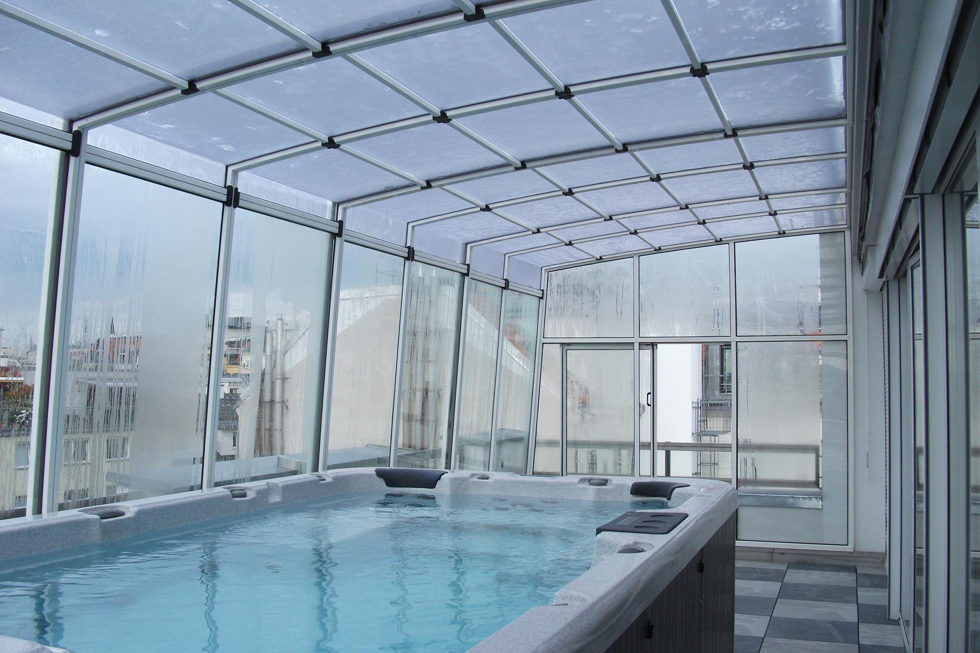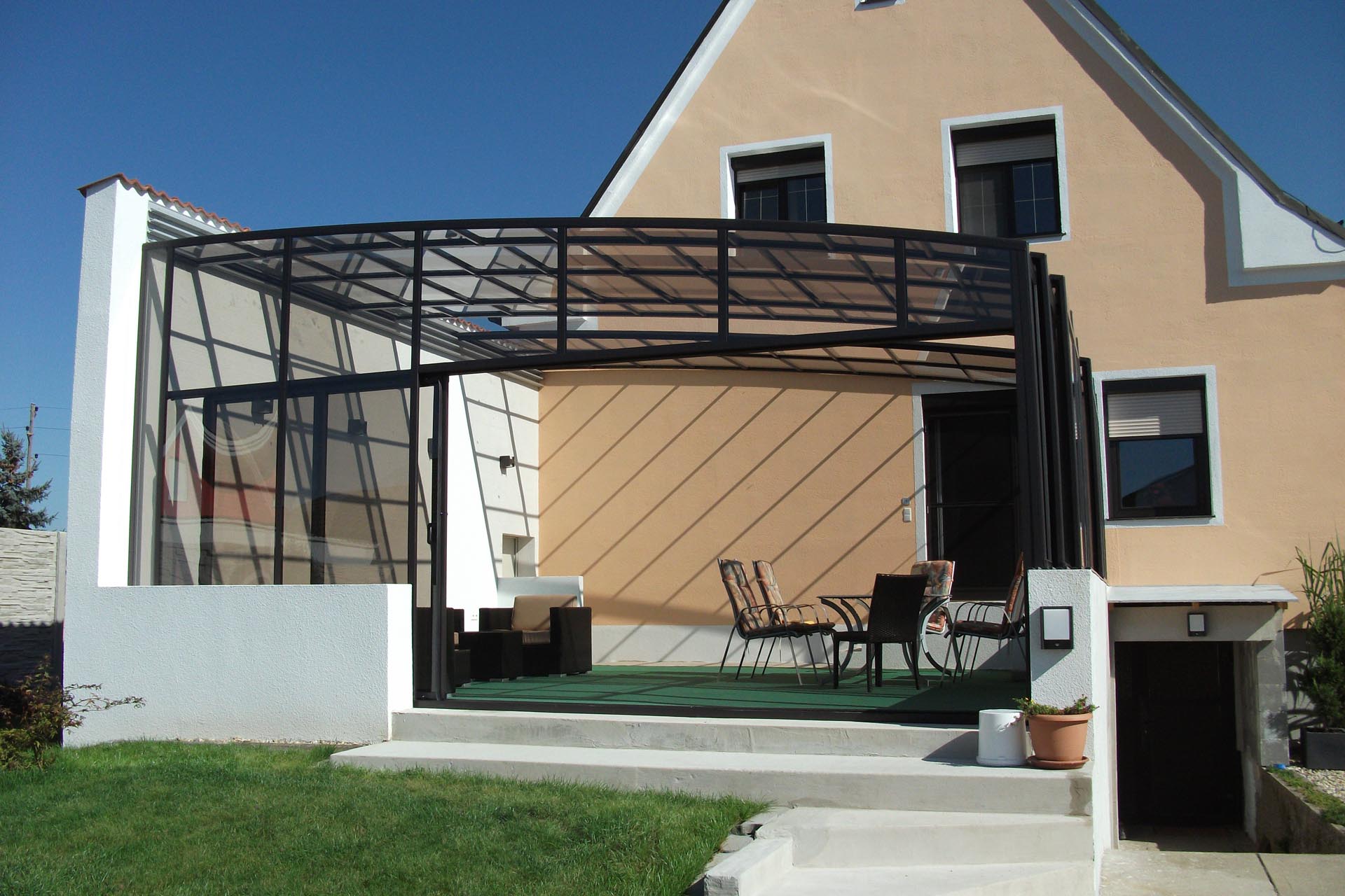 4 mm naturklare Polykarbonat-Verglasung.