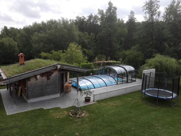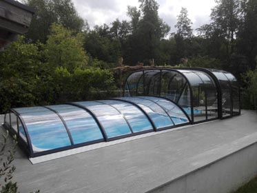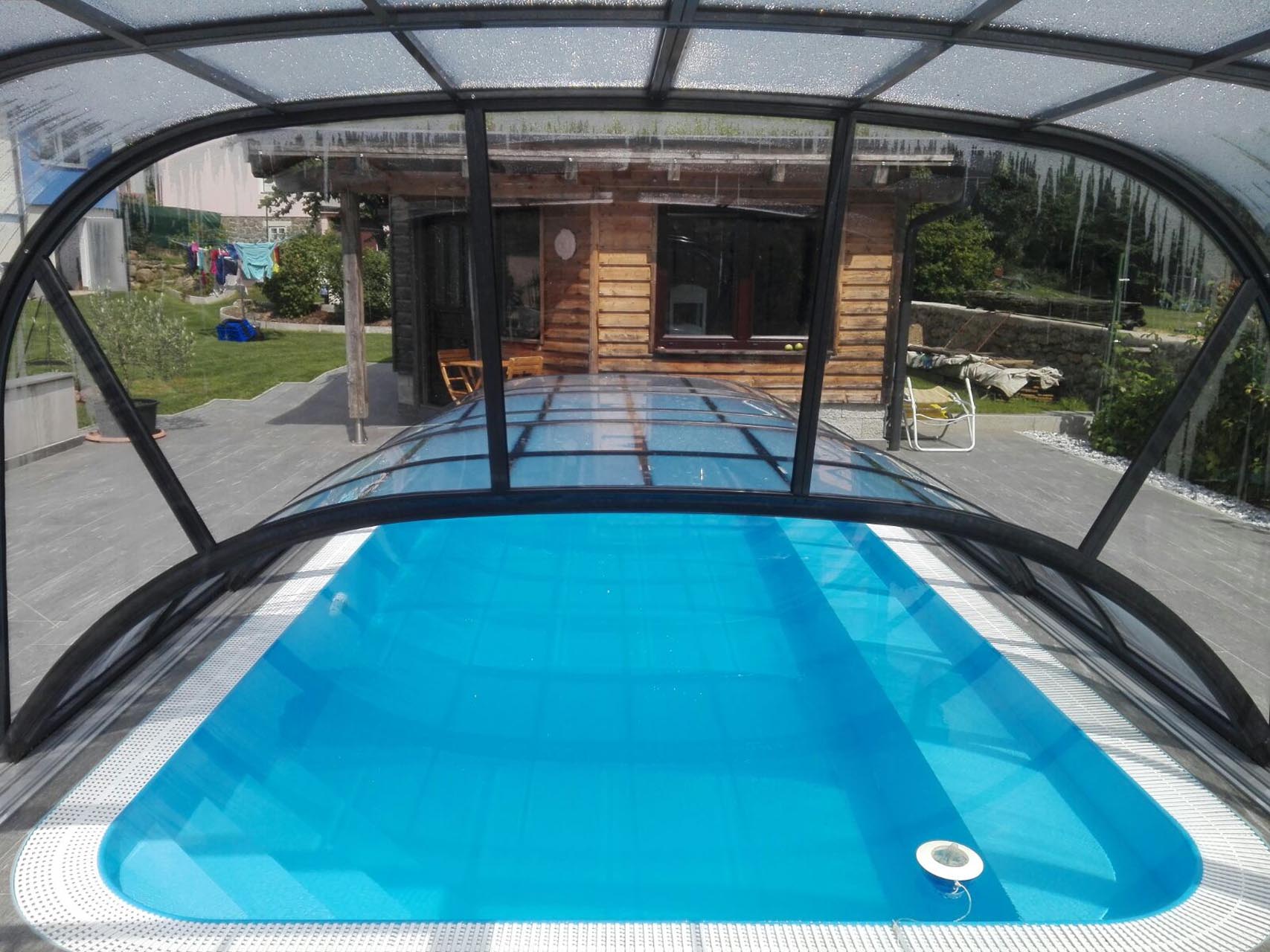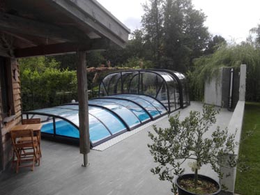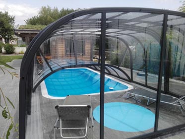 4 mm naturklare Polykarbonat-Verglasung oder 10 mm Polykarbonat Doppelstegplatten.